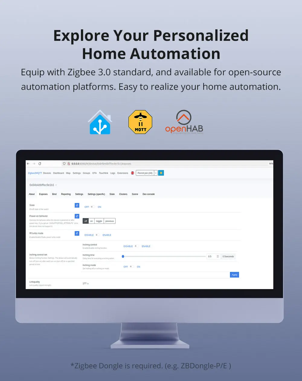 【Seamless Integration with Home Assistant & OpenHAB】Effortlessly connect to major smart home platforms like Home Assistant (via ZHA or Zigbee2MQTT) and OpenHAB. Enjoy smooth Zigbee device pairing, simplified automation routines, and full ecosystem compatibility—perfect for DIY smart home enthusiasts and advanced users alike.