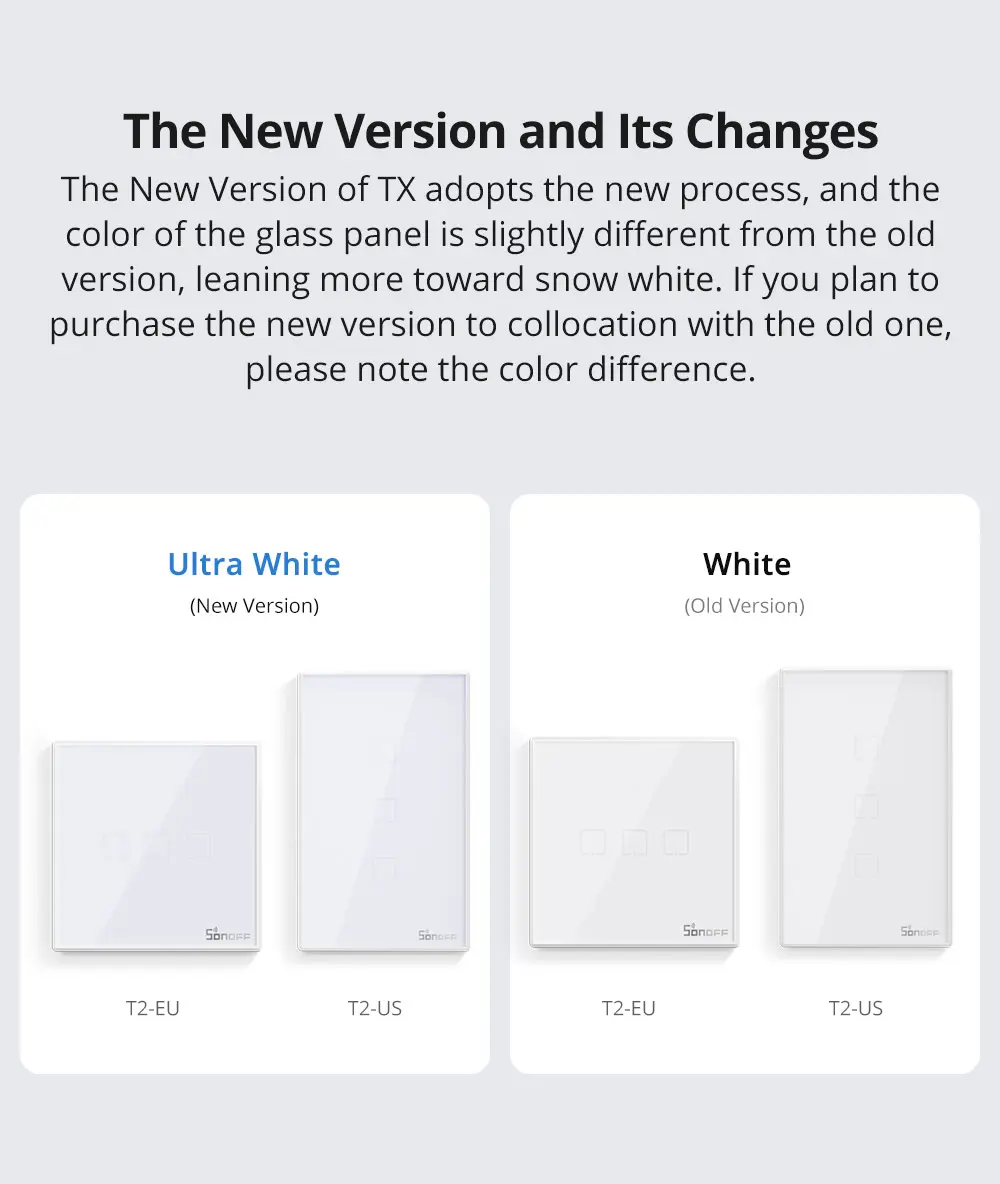 SONOFF TX Series WiFi Wall Switches combine modern touch control with smart automation. Manage lights remotely via the eWeLink App with real-time status sync, or use voice commands through Alexa and Google Assistant. You can create automated schedules for energy efficiency and convenience. With sleek design and seamless smart scene integration, TX Series offers stylish, hands-free control and customizable automation across your smart home.