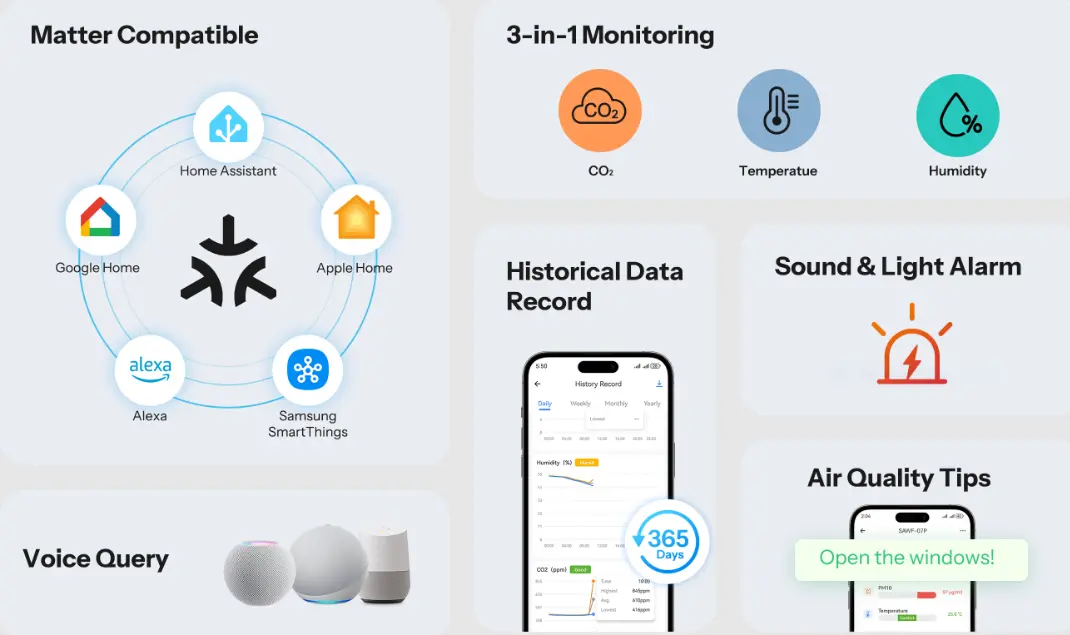 With a wider working coverage! AirGuard CO2 supports joining the Matter ecosystem,