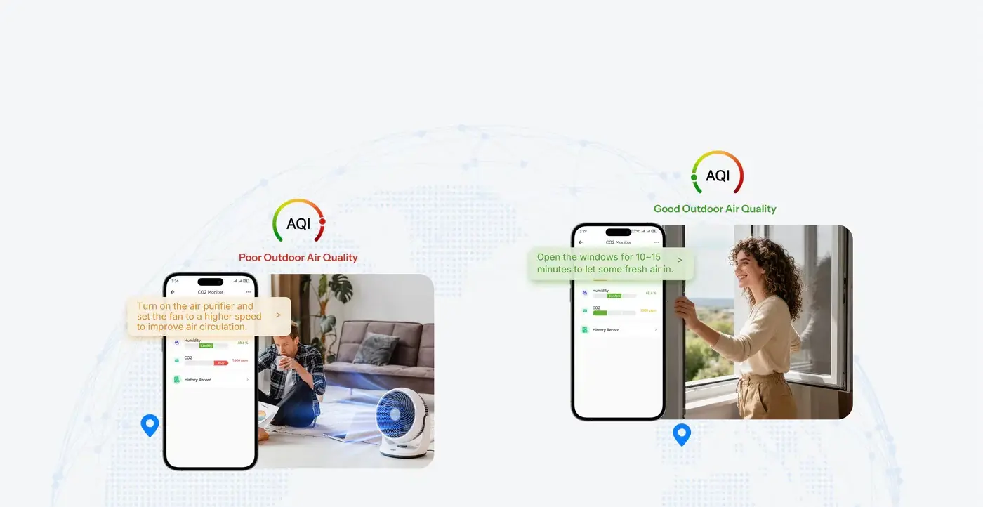 It will analyze the CO₂ level in your room and the local Air Quality Index (AQI), and then provide you with more targeted and effective suggestions for improving air quality.