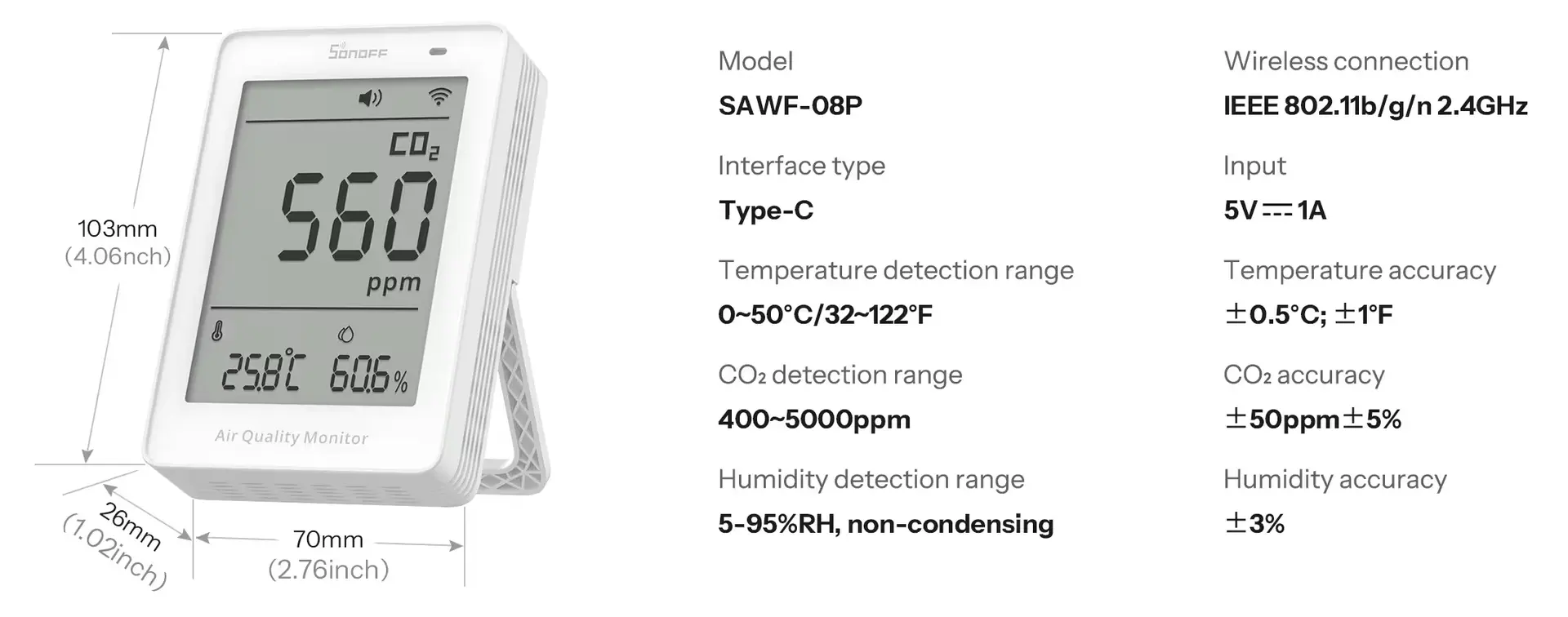 SONOFF AirGuard CO2 Matter Over Wi-Fi Air Quality Monitor | SAWF-08P